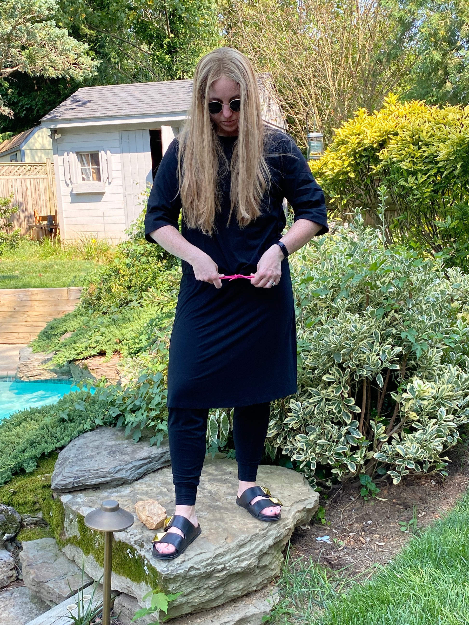 Meet your new BFF; her name is Drawstring Top. The Drawstring Top levels up your current  go-to T-Shirt. With the functional (and fun!) drawstring, you will have the freedom to adjust this top to however you like. Make it a Crop Tee or leave it full length. The sleeves of the Drawstring Top fit wider so you have the ability to throw over your gym clothes and run to your next destination if you should need. Or choose to wear it paired with your favorite denim skirt for an extra flair to the already stylish you.